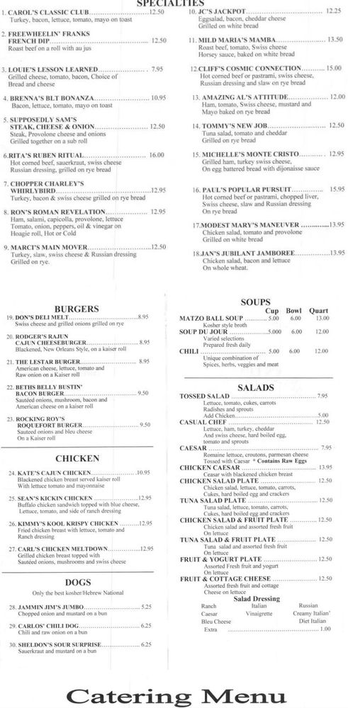 The menu features a variety of salads like the Casual Chef Salad, bursting with fresh ingredients and bold flavors. For burger enthusiasts, options like the Beth's Belly Bustin Bacon Burger and the Rodgers Rajun Cajun Burger promise satisfaction in every bite.